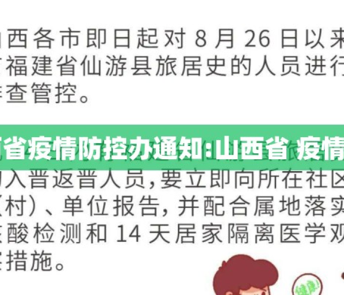 **山西省疫情防控领导小组办公室发布了最新疫情通知,针对当前疫情形势变化,提出了一系列精准防控措施,通知强调,要坚持“外防输入、内防反弹”总策略,科学调整防控政策,确保经济社会运行与疫情防控两手抓...